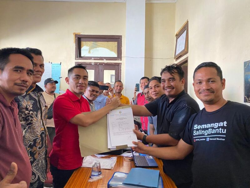 MEULABOH, Suararepubliknews.com – Tim sukses Zulkifli Andi Govi akrab disapa Dekzol mengantarkan kandidat mereka pada pengembalian berkas sebagai Calon Ketua DPD II KNPI Kabupaten Aceh Barat di Gedung KNPI Aceh Barat, pada Minggu 27 Agustus 2023, Pukul 14.30 Wib.