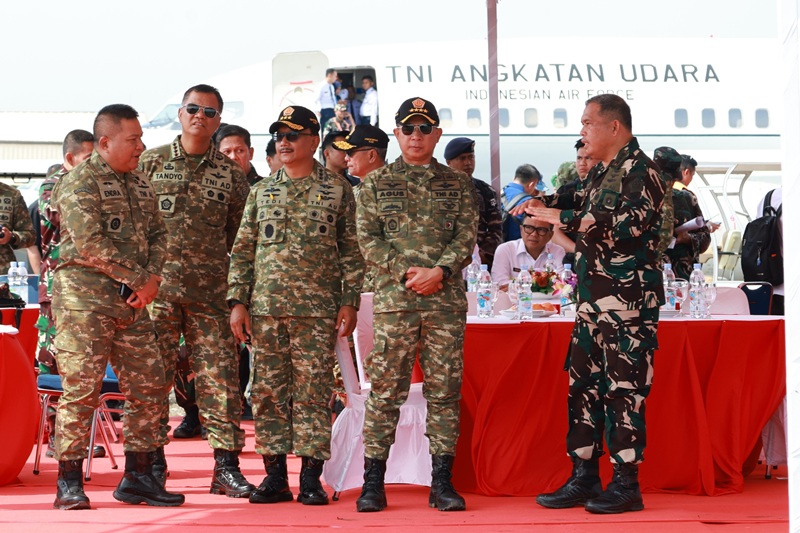 Jakarta, SRN – (Puspen TNI). Panglima TNI Jenderal TNI Agus Subiyanto mendampingi Menteri Pertahanan RI Sjafrie Sjamsoeddin bersama Jaksa Agung ST Burhanuddin, Kepala BPKP Muhammad Yusuf beserta pejabat terkait, menyaksikan secara langsung pelaksanaan Latihan Komando Gabungan (Kogab) TNI yang terintegrasi Tahun 2025 di kawasan Bandara PT IMIP, Morowali, Sulawesi Tengah, Kamis (20/11/2025).