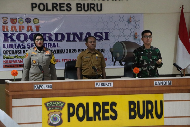 Rapat Koordinasi Lintas Sektoral Operasi Ketupat Idul Fitri 1446 H di Polres Buru dibuka langsung oleh Asisten 1 Bupati, Nawawi Tangtangi. Acara ini dihadiri oleh Kapolres Buru, AKBP Sulastri Sukidjang S.H., S.I.K., M.M., serta Dandim 1506 Namlea, Letkol Mohamad Tamami.