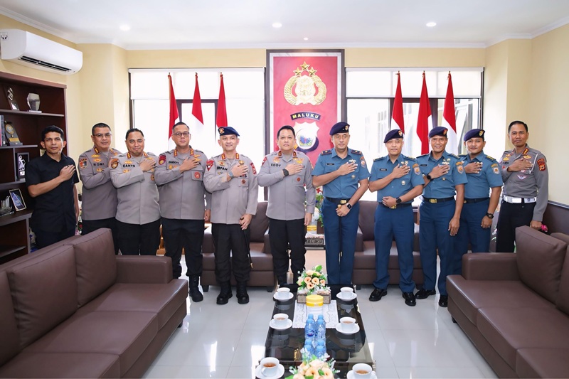 MALUKU- Kepala Kepolisian Daerah Maluku, Irjen Pol. Drs. Eddy Sumitro Tambunan, M.Si, menerima kunjungan dari Komandan Guspurla Koarmada III, Laksamana Pertama TNI Lewis N. Nainggolan.
