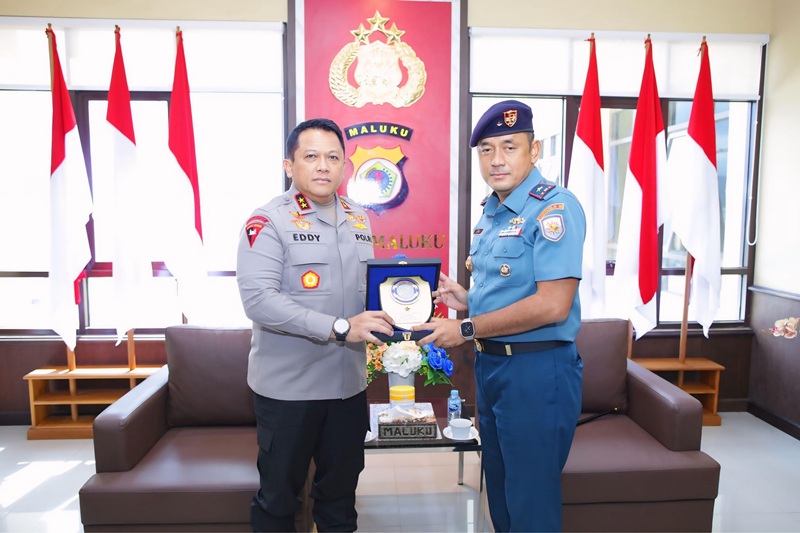 MALUKU- Kepala Kepolisian Daerah Maluku, Irjen Pol. Drs. Eddy Sumitro Tambunan, M.Si, menerima kunjungan dari Komandan Guspurla Koarmada III, Laksamana Pertama TNI Lewis N. Nainggolan.