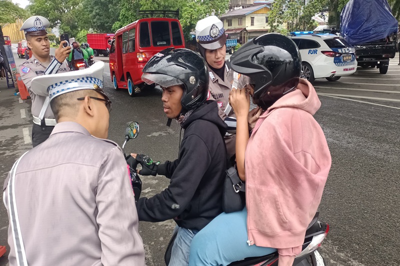 MALUKU- Hari pertama pelaksanaan Operasi Simpatik Salawaku Tahun 2025, personel Polda Maluku melakukan pengaturan arus lalulintas hingga menegur pengendara bermotor yang melanggar aturan lalulintas.