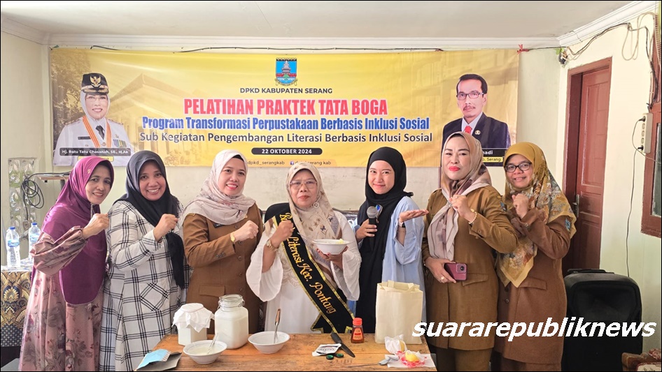 Serang, suararepubliknews.com – Sebanyak 90 ibu-ibu di Kabupaten Serang mengikuti pelatihan tata boga yang diselenggarakan oleh Dinas Perpustakaan dan Kearsipan Daerah (DPKD) Kabupaten Serang. Pelatihan ini merupakan bagian dari Program Transformasi Perpustakaan Berbasis Inklusi Sosial (TPBIS), yang bertujuan untuk memberdayakan masyarakat melalui keterampilan praktis yang dapat meningkatkan kesejahteraan mereka.