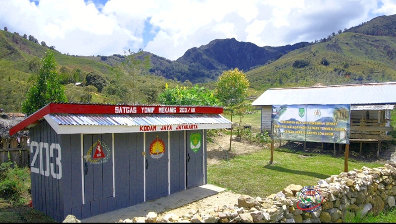 Satgas Yonif Mekanis 203/AK resmikan MCK Gereja Lowanom di Distrik Malagayneri, Kabupaten Lanny Jaya Papua, Rabu (25/01/2023) , Foto : Satgas Yonif Mekanis 203/AK .