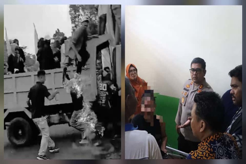 Dalam kejadian tersebut, empat orang mahasiswa mengalami luka bakar, termasuk seorang mahasiswi berinisial DVL (23 tahun) yang terkena sambaran api hingga membakar baju yang dikenakannya. Beruntung, petugas Kepolisian bertindak cepat untuk memadamkan api dan menyelamatkan para korban dari kobaran api yang semakin membesar.