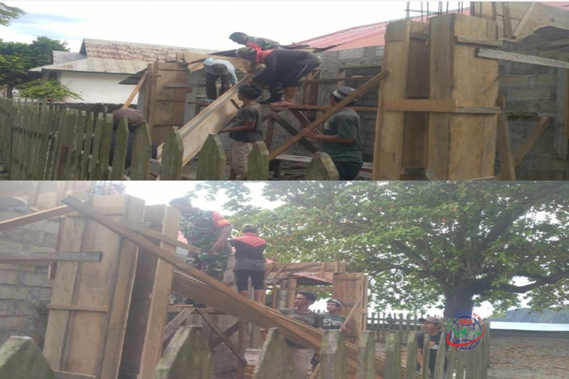 Namrole(Kabupaten buruselatan)SuaraRepublikNews.com -Babinsa Desa Oki Baru Koramil 1506-02/Leksula Serda Awat Lajiju melaksanakan Karya Bakti membantu renovasi rumah warga yang kurang mampu milik Bapak La Bule bersama masyarakat Desa Oki Baru Kec Namrole Kab Bursel pada hari