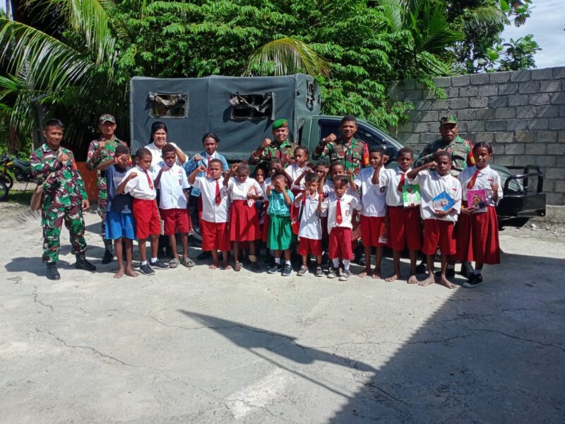 Babinsa Timika Bagikan Buku Tulis ke Siswa SD Teologi Kristen