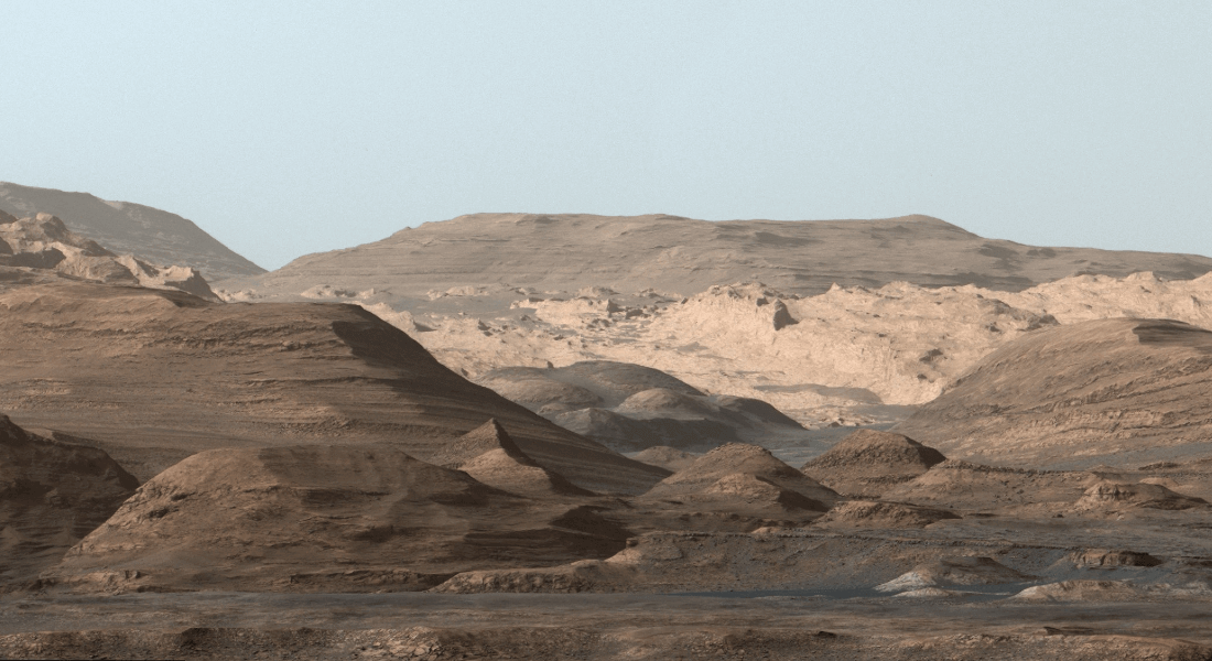 Mount Sharp in the center of Gale Crater where organic material was found by Curiosity Rover: Photo NASA/JPL-Caltech/MSSS