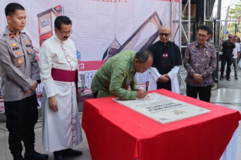 PJ Walikota Cimahi H Dikdik Suratno Nugrahawan menandatangani penetapan dua gedung bersejarah eks bioskop Rio dan Gereja Santo Ignatius sebagai Cagar Budaya, (01/09/2023 ).