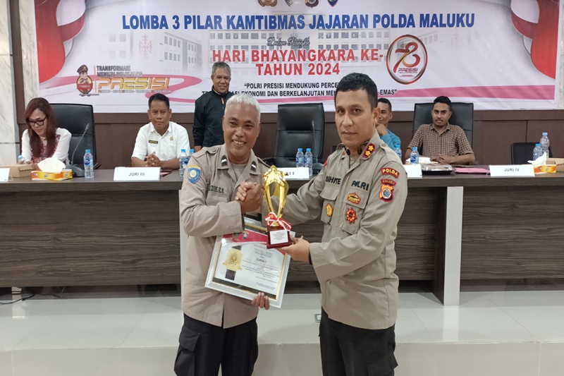 AMBON.SuaraRepublikNews.com.-POLDAMALUKU- Bhabinkamtibmas Negeri Latuhalat, Polresta Pulau Ambon dan Pulau-pulau Lease, keluar sebagai juara 1 lomba 3 pilar kamtibmas di wilayah Polda Maluku.