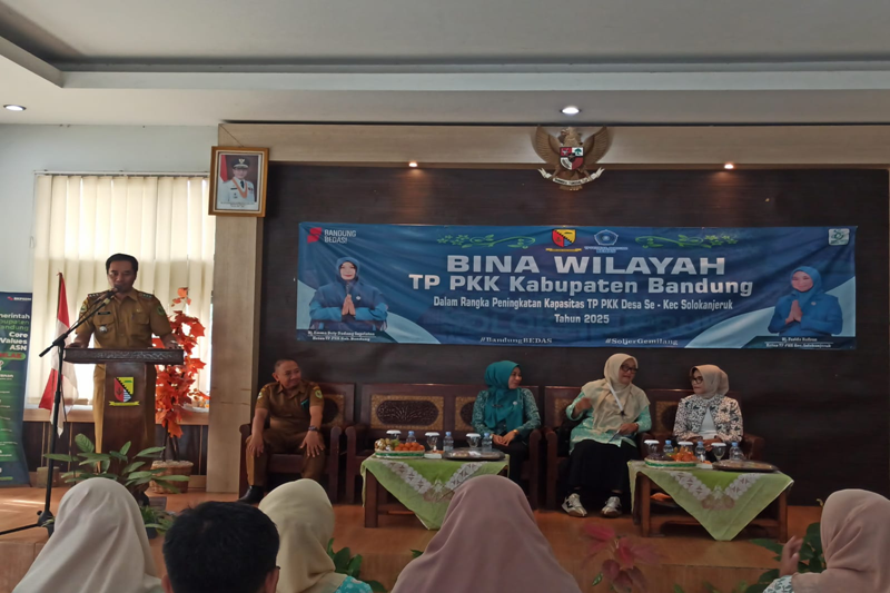Tim Penggerak PKK Kab. Bandung, hadir dalam Bina Wilayah TP PKK Kab. Bandung Dalam Rangka Peningkatan Kapasitas TP PKK Desa SE – Kec. Solokanjeruk Kab. Bandung Th 2025. Partisipasi 80 % dalam Pemilukada 2024, Bedas Jilid 2 akan lebih memotivasi Kader dalam mensukseskan program pembangunan di Kec. Solokanjeruk dalam program pemberdayaan kesejahteraan masyarakat. Sementara itu dalam sambutannya Sekretaris PKK Kab. Bandung, Bu Kadis, Sekretaris dan Bendahara, Pokja 1, 2, 3,4 didampingini Diskominfo Kab. Bandung.