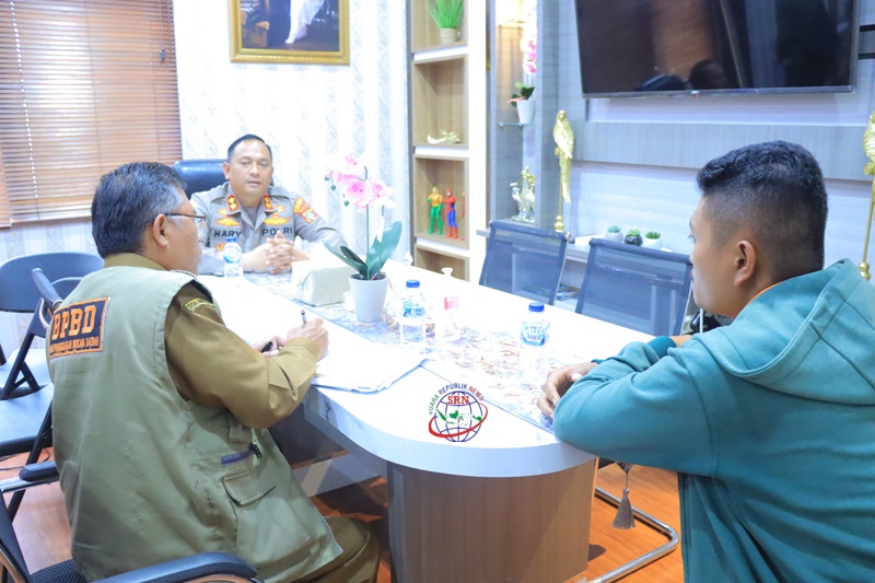 Kepala Badan Penanggulangan Bencana Daerah (BPBD) Humbahas Benton Lumban Gaol, S.T, M.Si, didampingi staf kunjungi Kapolres Humbahas di ruangan kerja Kapolres. Selasa (06/06/2023).