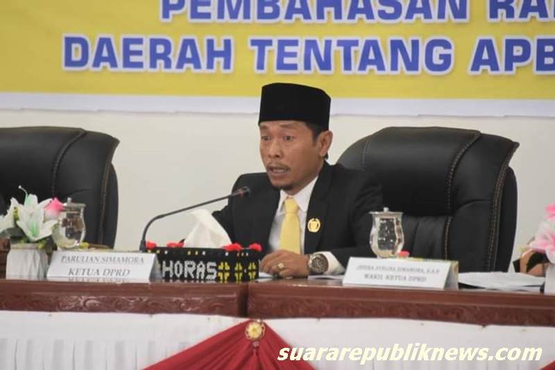 Humbahas, suararepubliknews.com – Bupati Humbang Hasundutan, Dosmar Banjarnahor, SE, menyampaikan Nota Pengantar atas Rancangan Peraturan Daerah (Ranperda) tentang Anggaran Pendapatan dan Belanja Daerah (APBD) Tahun Anggaran (TA) 2025 pada Rapat Paripurna DPRD Kabupaten Humbang Hasundutan, Senin, 18 November 2024. Acara digelar di Ruang Paripurna DPRD Kabupaten Humbang Hasundutan dan dihadiri oleh Ketua DPRD Parulian Simamora bersama Wakil Ketua Marsono Simamora dan Jessika Avelina Simamora, S.A.B, serta para anggota DPRD lainnya.