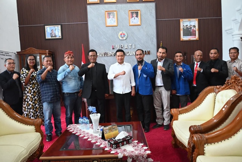 DOLOKSANGGUL, SRN Bupati Humbahas Dr Oloan Paniaran Nababan SH MH didampingi Sekda Chiristison Rudianto Marbun dan perangkat daerah, sambut kunjungan organisasi DPC GAMKI (Gerakan Angkatan Muda Kristen Indonesia) Kabupaten Humbahas, Rabu (15/4/2026( di Kantor Bupati Humbahas.