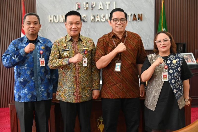DOLOKSANGGUL, SRN – Bupati Humbahas Dr Oloan P Nababan SH MH didampangi Kepala Bappelitbangda Pahala Lumban Gaol, Kepala BPKPD Resva Panjaitan menerima kunjungan kerja Kepala KPPN (Kantor Pelayanan Perbendaharaan Negara) Balige, Bernand Situmorang, Kamis (30/4/2026) di Kantor Bupati Humbahas Bukit Inspirasi Dolosanggul. Kehadiran Kepala KPPN Balige itupun disambut hangat Bupati Humbahas.