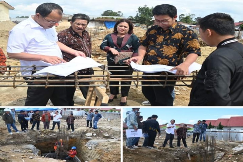 Bupati Humbahas Dosmar Banjarnahor, SE meninjau proyek pembangunan PLUT (Pusat Layanan Usaha Terpadu) di Doloksanggul, Kamis (6/7/23).