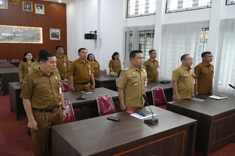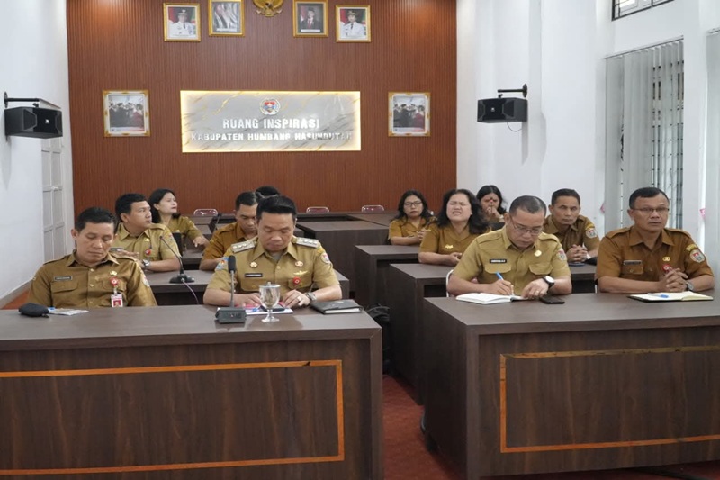 HUMBAHAS, SRN – Bupati Humbang Hasundutan Dr. Oloan Paniaran Nababan, SH, MH mengikuti Rapat Koordinasi Pengendalian Inflasi bersama Kementerian Dalam Negeri Republik Indonesia (Kemendagri) melalui Video Conference (Vidcon) Rapat dari Ruang Rapat Setdakab Perkantoran Bukit Inspirasi Doloksanggul, Senin (9/2/2026).