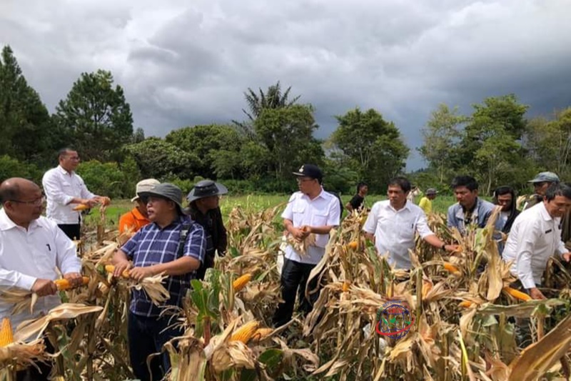 Bupati Humbahas Dosmar Banjarnahor, SE panen jagung bersama Kelompok Tani (Poktan) Pea Sigaol (Rabu, 11/1/2023).