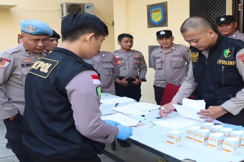 Propam Polres Lebak Lakukan Tes Urine Personil secara Dadakan, Senin (18/9/2023).