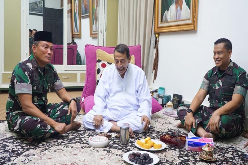 Panglima Kodam IV/Diponegoro Mayjen TNI Widi Prasetyo d dampingi sejumlah pejabat teras Kodam IV Diponegoro kunjungan ke tempat ulama karismatik Habib Luthfi bin Yahya di Jalan Dokter Wahidin No.70 Noyontaan Kecamatan Pekalongan Timur , Selasa malam (9/5/23).