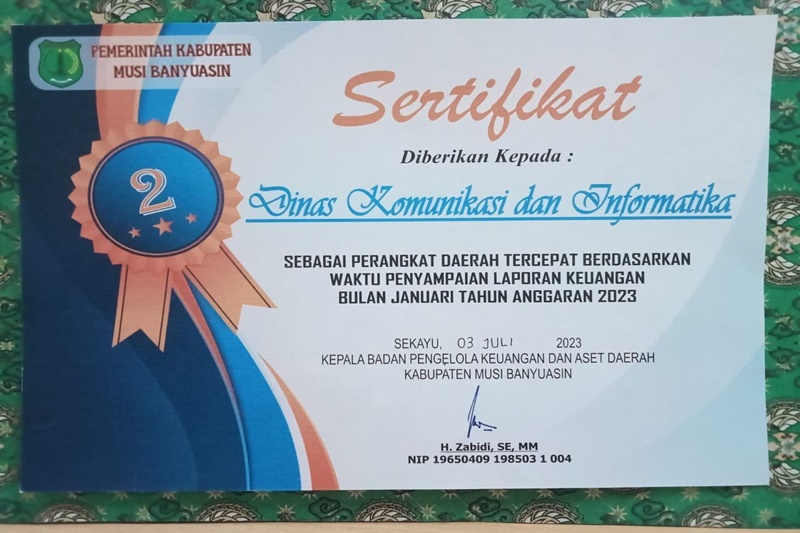 SEKAYU, MUBA- Keren, Dinas Komunikasi dan Informatika dibawah komando Herryandi Sinulingga AP tercatat sebagai perangkat daerah tercepat dan terlengkap ke dua dalam menyampaikan laporan keuangan bulan Januari tahun 2023 di lingkungan Pemkab Muba.