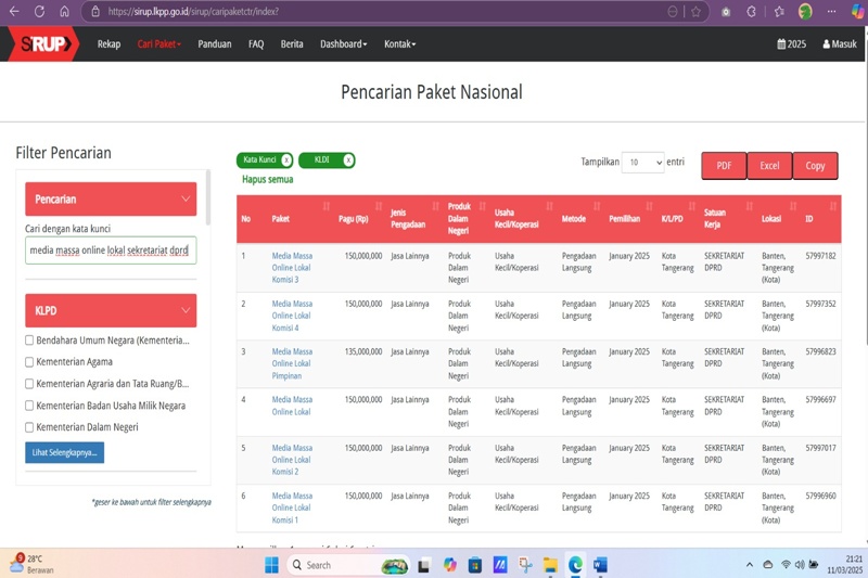 - Berdasarkan pasal 22, Perpres No.16 tahun 2018, Tentang pengadaan barang dan jasa wajib mengumumkan paket kegiatan. Dalam hal ini kami sudah mengumumkan 100 persen kegiatan di setwan termasuk paket yang menjadi bagian sub kegiatan publikasi dan dokumentasi pada kegiatan peningkatan kapasitas DPRD Tahun 2025: