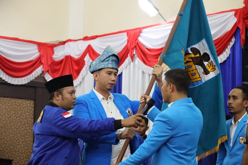 Richky beserta seluruh pengurus dilantik langsung oleh Ketua DPD KNPI Kepulauan Riau Muhammad Teddy Nuh di Gedung Nasional Karimun, Minggu (9/10/22).