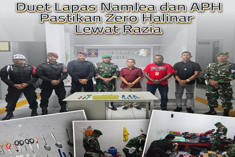 Namlea,SuaraRepublikNews.com.-Kolaborasi Lembaga Pemasyarakatan (Lapas) Kelas III Namlea dengan Aparat Penegak Hukum (APH) dalam memastikan Zero Handphone, Pungli, Narkoba (Halinar) di dalam Lapas diwujudkan melalui razia insidentil yang bertajuk Pemasyarakatan Bersih-Bersih didalam blok hunian warga binaan, Kamis (20/3).
