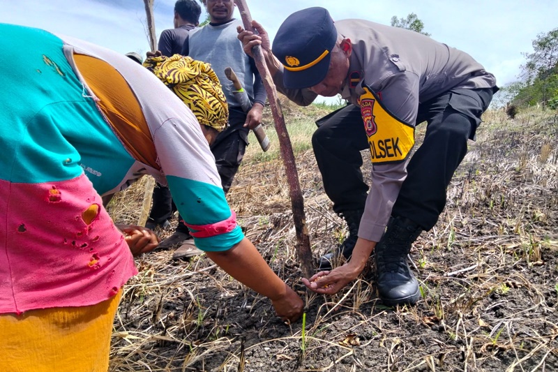 Kegiatan diawali dengan persiapan lahan dan penanaman bibit jagung oleh personel Polsek bersama kelompok tani. Seluruh rangkaian kegiatan berlangsung aman dan lancar.
