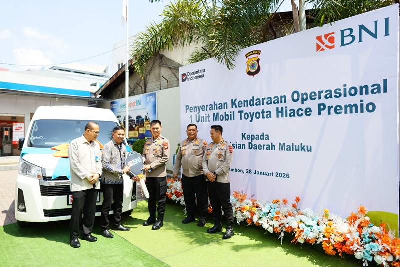 MALUKU, SRN – Implementasi Transformasi Polri Presisi dalam pelayanan publik mendapat dukungan nyata dari sektor BUMN. PT Bank Negara Indonesia (Persero) Tbk Cabang Ambon menyerahkan satu unit kendaraan operasional jenis mini bus kepada Polda Maluku sebagai bentuk kontribusi langsung dalam memperkuat pelayanan kepolisian yang cepat, responsif, dan humanis, Rabu (28/1/2026).