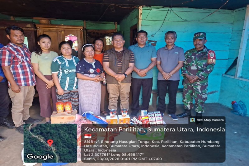 DOLOKSANGGUL, SRN – Pemerintah Kabupaten Humbang Hasundutan melalui Dinas Sosial memberikan bantuan sosial berupa permakanan kepada keluarga korban rumah tertimpa pohon yang terjadi di dua (2) tempat yaitu di Desa Siambaton Pahae Kecamatan Pakkat dan di Desa Sihotang Hasugian Tonga Kecamatan Parlilitan, Senin (23/3/2026).