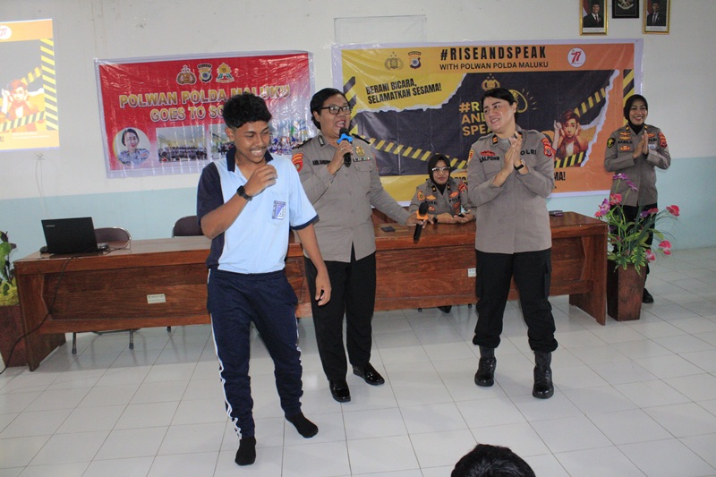 “Kegiatan ini merupakan wujud nyata pengabdian dan kepedulian Polwan terhadap masa depan generasi penerus bangsa, khususnya di wilayah Maluku. Kami ingin hadir bukan hanya sebagai aparat penegak hukum, tetapi juga sebagai sahabat dan pembimbing bagi para pelajar,” ujar Kompol Rachel dalam sambutannya.