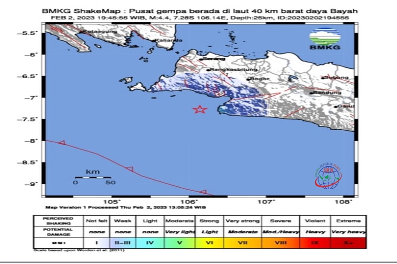 Gempa 4,4 Magnitudo Guncang Bayah Lebak Banten 40 km Barat Daya Bayah-Banten” tulis BMKG, Kamis (2/2/2023).