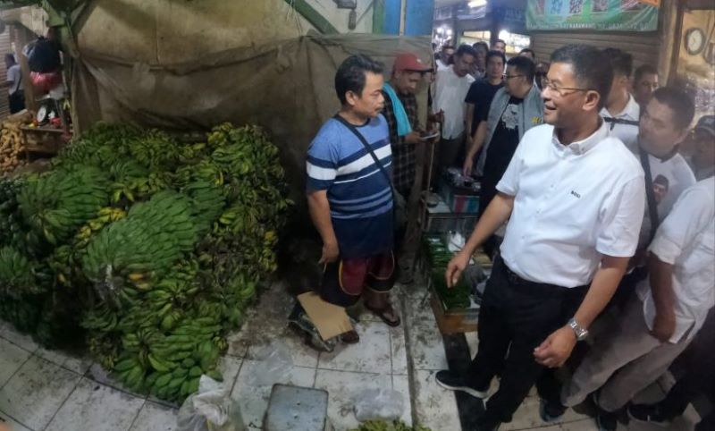 Dalam lawatannya, Erwan Setiawan langsung berinteraksi dengan para pedagang, menunjukkan kepeduliannya terhadap masalah harga bahan pokok dan kondisi ekonomi pedagang kecil.