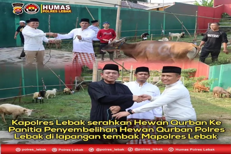 Kapolres Lebak Polda Banten AKBP Suyono, SIK mengatakan, “Ya hari kami menyerahkan secara simbolis Hewan Qurban Polres Lebak kepada Panitia Penyembelihan Hewan Qurban Polres Lebak di lapangan Mapolres Lebak,” ujar Suyono.