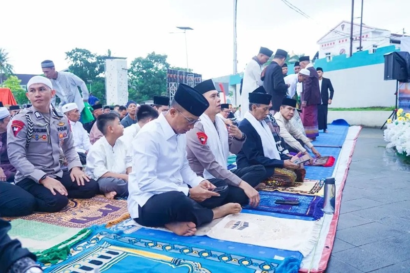 Hujan Tak Surutkan Kekhusyukan Shalat Id di Lapangan Merdeka, Pangdam XV/Pattimura Lanjutkan Silaturahmi Halal Bihalal