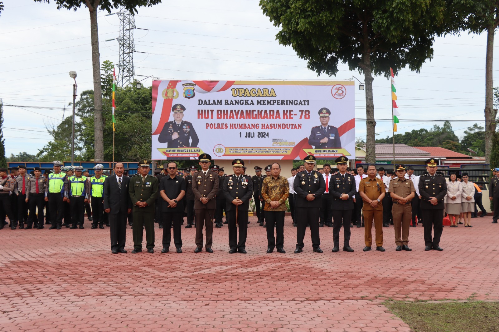 Upacara HUT Bhayangkara ke-78 di Polres Humbang Hasundutan turut dihadiri oleh Forkopimda, Bupati Humbang Hasundutan Dosmar Banjarnahor, SE, Wakil Ketua DPRD Humbang Hasundutan Labuan Sihombing, Kajari Humbang Hasundutan Dr. Noordien Kusumanegara, SH, MH, Dandim 0210/TU diwakili Pabung Humbang Hasundutan Mayor Ojak Simarmata, Ketua Bhayangkari Cabang Humbang Hasundutan Ny. Nita Ardianto, TP. PKK Humbang Hasundutan, Anggota DPRD Provsu Irwan Simamora, Kepala Kantor Imigrasi Kelas II TPI Pematang Siantar Yusva Aditya, SH, Ka Rutan Kelas II B Humbahas Sahat Parsaulian Amd P, SH, MH, Wakapolres Humbang Hasundutan Kompol Muslim Amin S.E, Bupati Humbahas Periode 2005-2015 Drs. Maddin Sihombing, M.Si, serta tokoh masyarakat, tokoh pemuda, tokoh adat, masyarakat, LSM, dan insan pers.