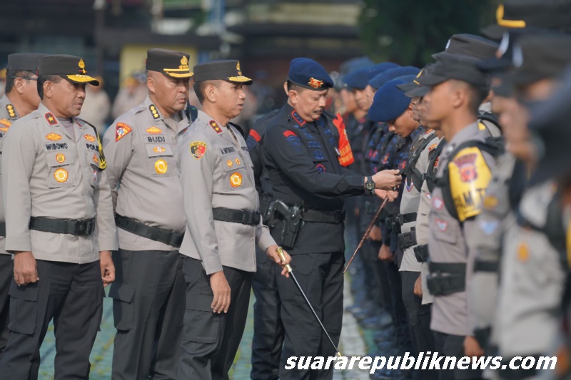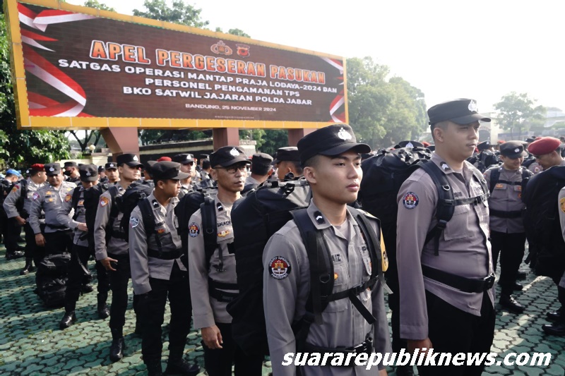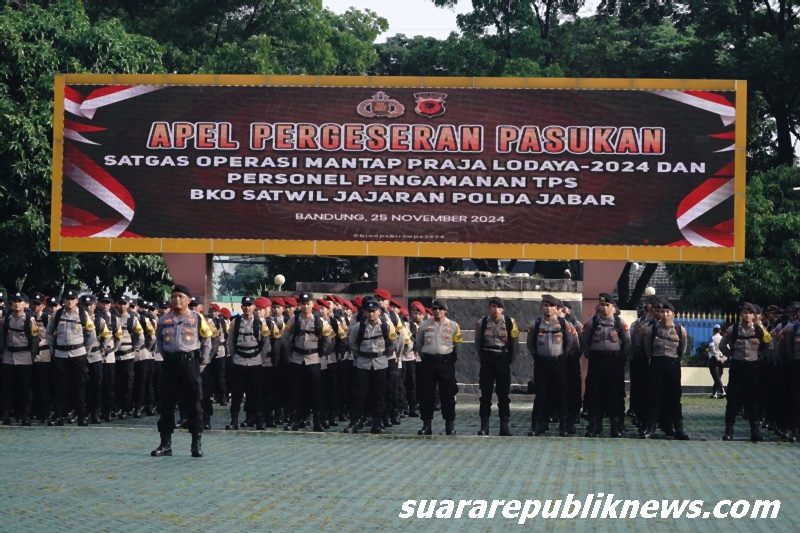 Bandung, suararepubliknews.com – Kapolda Jawa Barat Irjen Pol Dr. Akhmad Wiyagus, S.I.K., M.Si., M.M., memimpin apel pergeseran pasukan dalam rangka pelaksanaan Operasi Mantap Praja Lodaya 2024, Senin (25/11/2024) di lapangan apel Mapolda Jabar. Apel ini bertujuan untuk memastikan kesiapan personel dan sarana prasarana menjelang pengamanan tahapan pemungutan suara Pilkada Serentak 2024 yang akan digelar secara damai dan kondusif.