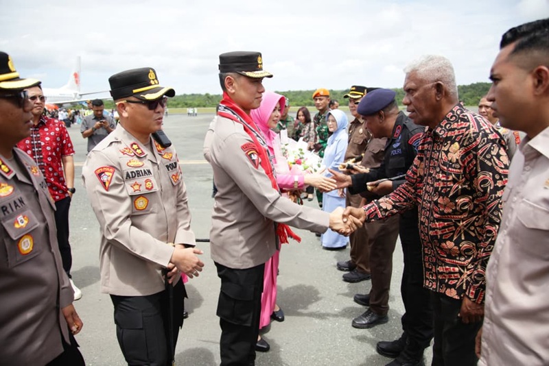 Penyambutan oleh Kapolres Mara dan Kapolres Tual beserta jajaran Forkopimda setempat berlangsung di Bandara Karel Sadsuitubun, Langgur, Kabupaten Malra pukul 11.00 WIT.