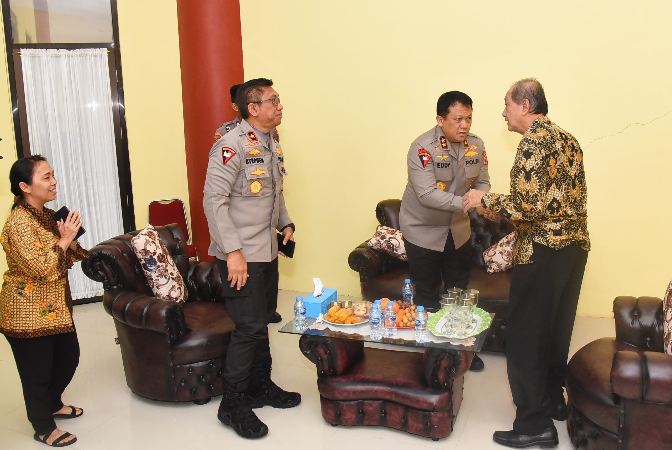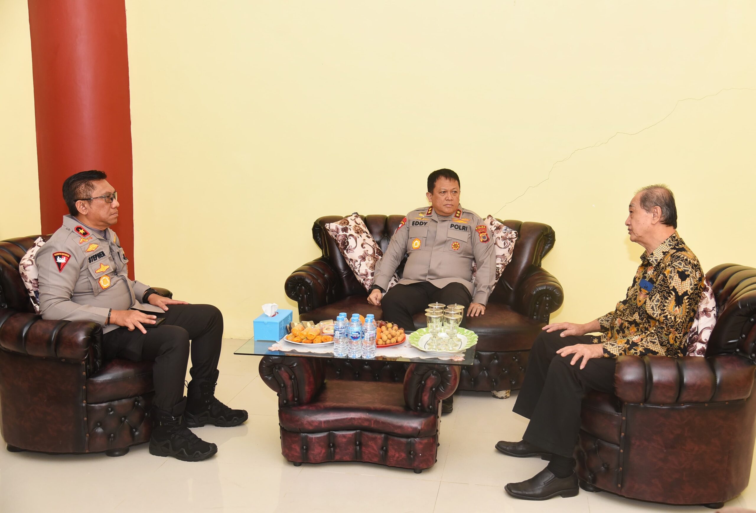 Kapolda Irjen Pol Drs. Eddy Sumitro Tambunan M.Si., didampingi oleh Wakapolda Maluku Brigjen Pol Stephen M. Napiun Sik, Direktur Intelkam, Direktur Binmas, dan Kabid Humas Polda Maluku, memulai kunjungannya dengan menemui Ketua Walubi Maluku, Welhelmus Jauwerissa.