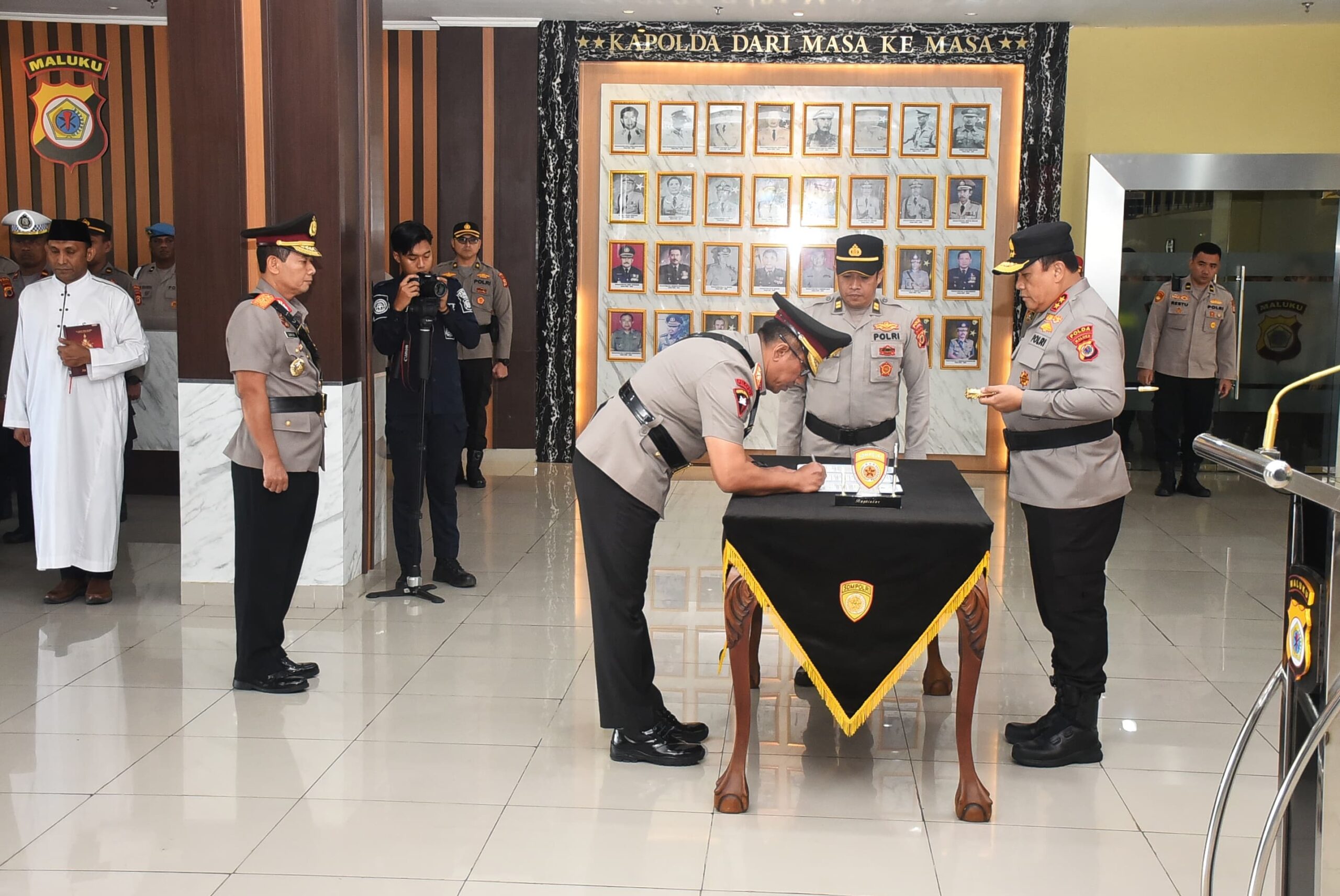 Acara tersebut dilaksanakan di area Lobi Lantai 1 Markas Polda Maluku, Tantui, Kota Ambon. Sertijab ini menandai pergantian pejabat lama, Brigjen Pol Stephen M. Napiun S.Ik., SH., M.Hum, kepada pejabat baru, Brigjen Pol Suwandi S.Ik., MH.
