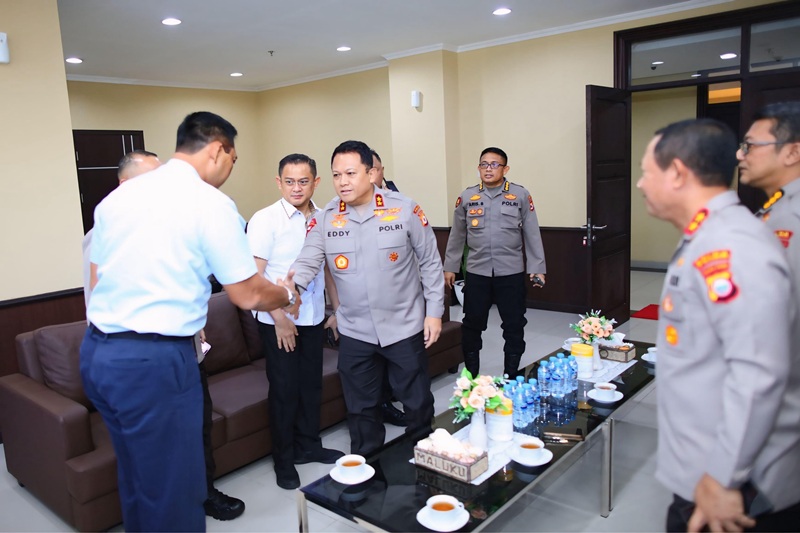 MALUKU — Kepala Kepolisian Daerah Maluku Irjen Pol. Drs. Eddy Sumitro Tambunan, M.Si menerima kunjungan silaturahmi dari Komandan Lanud Pattimura Ambon, Kolonel Pnb. Sugeng Sughirato, S.Sos., M.M, Senin (26/5/2025).
