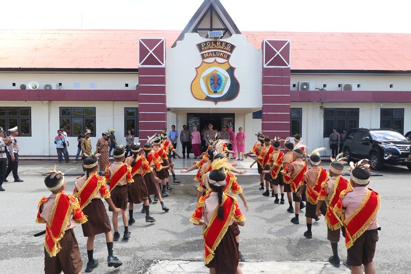 Salah satu momen menarik dalam rangkaian kunjungan Kapolda di Mapolres Kepulauam Aru yaitu penampilan Polisi Cilik ‘Pela Manise’. Mereka mempersembahkan pertunjukan kebanggaan di hadapan Kapolda Maluku, Ketua Bhayangkari, dan rombongan.