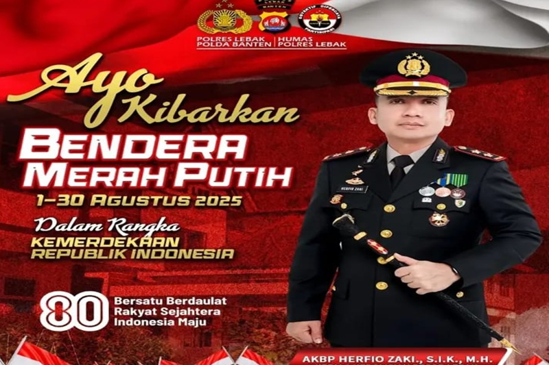 Lebak, Suararepubliknews – Dalam rangka Menyambut HUT Kemerdekaan RI Ke-80, Kapolres Lebak Polda Banten, AKBP. Herfio Zaki, SIK, MH, beserta staf dan jajaran, secara resmi mengajak seluruh masyarakat Kabupaten Lebak untuk bersama-sama mengibarkan Bendera Merah Putih selama periode 1 sampai 30 Agustus 2025, sebagai sebuah wujud nyata cinta tanah air dan penghargaan yang mendalam kepada para pahlawan yang telah berjuang dengan gigih untuk kemerdekaan Indonesia.