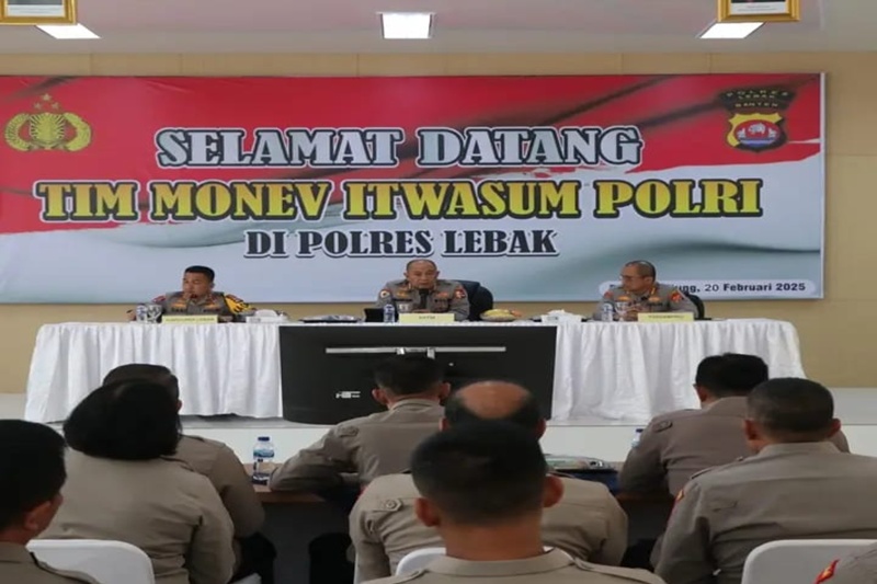 Lebak.Suara Republik News.- Kapolres Lebak Polda Banten AKBP Herfio Zaki, SIK, MH menerima kunjungan dari Tim Monitoring dan Evaluasi (Monev) Itwasum Polri di Mapolres Lebak, Kamis (20/2/2025). Tim Monev Itwasum Polri dipimpin oleh Kombespol Masjur, SH, SIK, yang didampingi oleh beberapa analis kebijakan madya, yaitu Kombespol Ino Harianto, SIK, MM, dan Kombespol M. Agung Suyono, SIK.