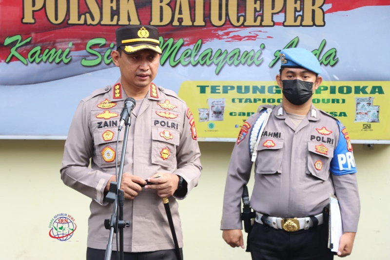 Kapolres Metro Tangerang Kota Kombes Pol Zain Dwi memimpin apel di lapangan Mapolsek Batuceper. Rabu (9/10/2022) pagi, menyampaikan amanat Kapolda Metro Jaya Irjen Pol Fadil Imran bahwa anggota polri harus ikhlas, selalu bersyukur dan menikmati menjadi anggota Polri ( foto: Margareth/SRN )