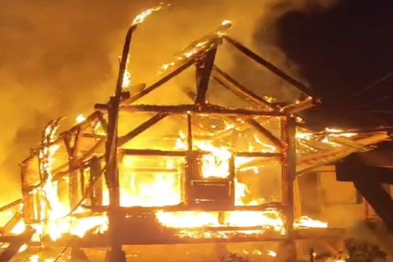 Lebak,Suara Republik News.- Kebakaran hebat melanda Pondok Pesantren Tarbiyatusibian pimpinan KH. Dudin di Kampung Sindang Patih, RT 001/002, Desa Kandang Sapi, Kecamatan Cijaku, Kabupaten Lebak.Minggu (5/1/2025)