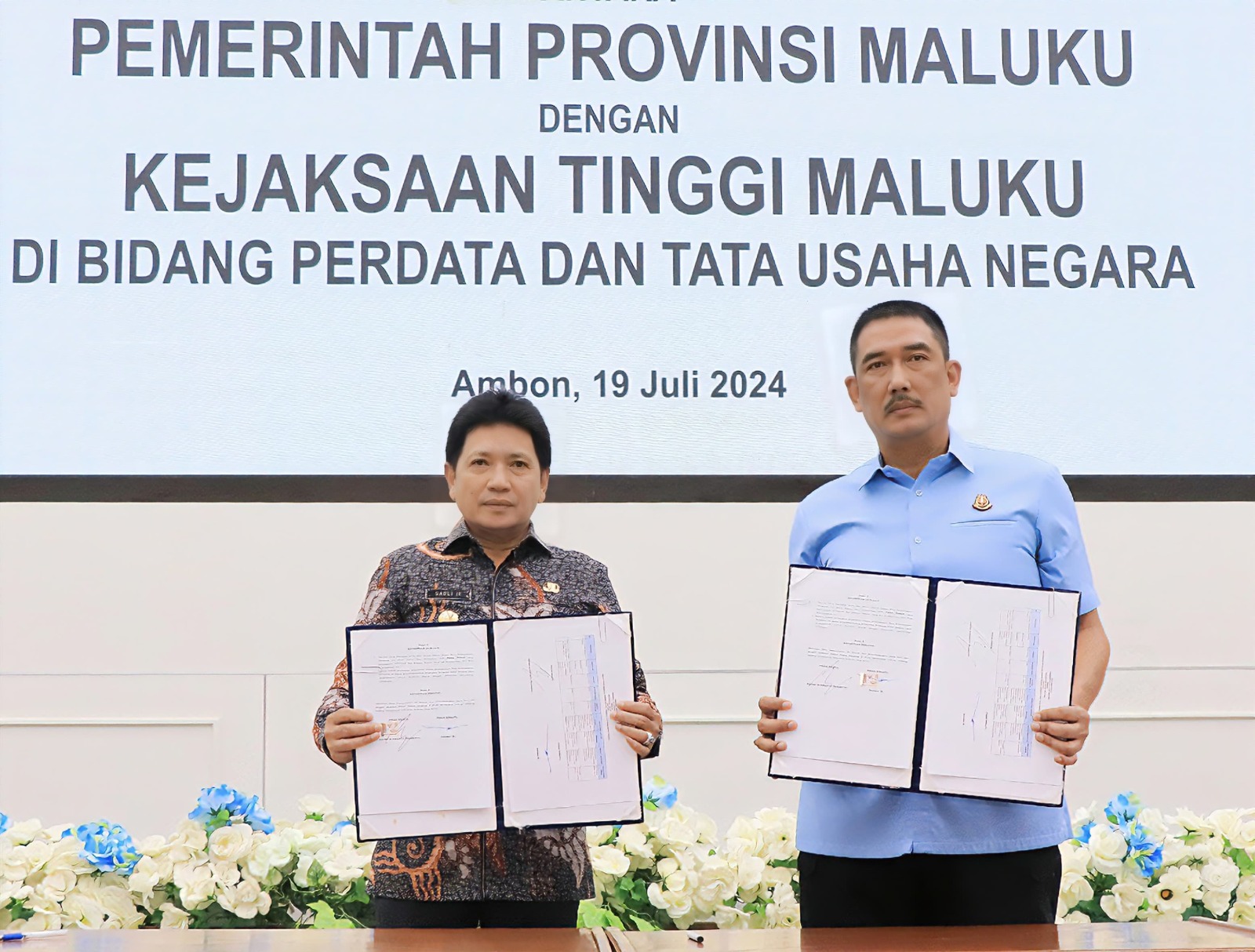 Kejaksaan Tinggi (Kejati) Maluku menggelar Penandatangan Perjanjian Kerjasama dengan Pemerintah Provinsi Maluku mengenai upaya preventif atau pencegahan terhadap potensi permasalahan hukum, sengketa hukum di bidang Perdata dan Tata Usaha Negara