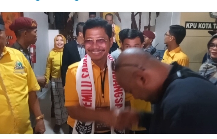 Dari pantauan awak media berkas pendaftaran di serahkan langsung oleh Ketua DPD Golkar dan diterima oleh komisioner KPU Kota Tangerang.