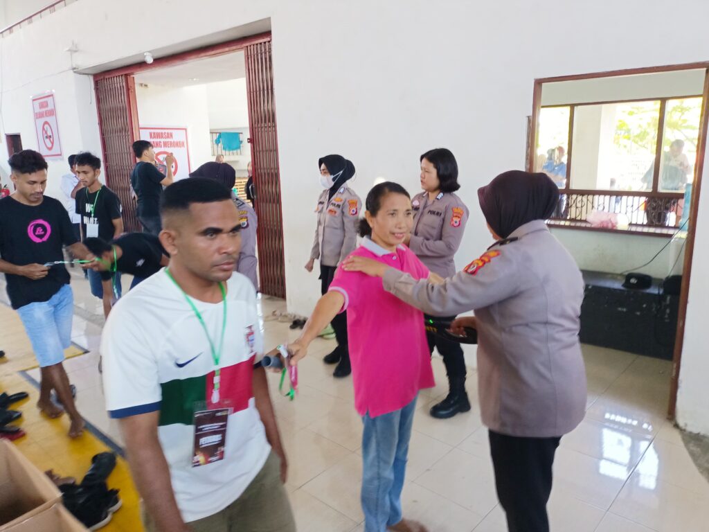 Untuk memastikan keamanan optimal, pemeriksaan dilakukan dengan menggunakan alat metal detector. Setiap orang yang keluar-masuk lokasi sortir harus menjalani pemeriksaan ini. Langkah ini bertujuan menghindari potensi risiko keamanan dan menjaga agar kegiatan berlangsung dengan tertib.